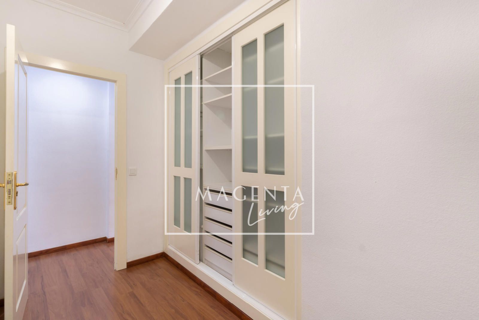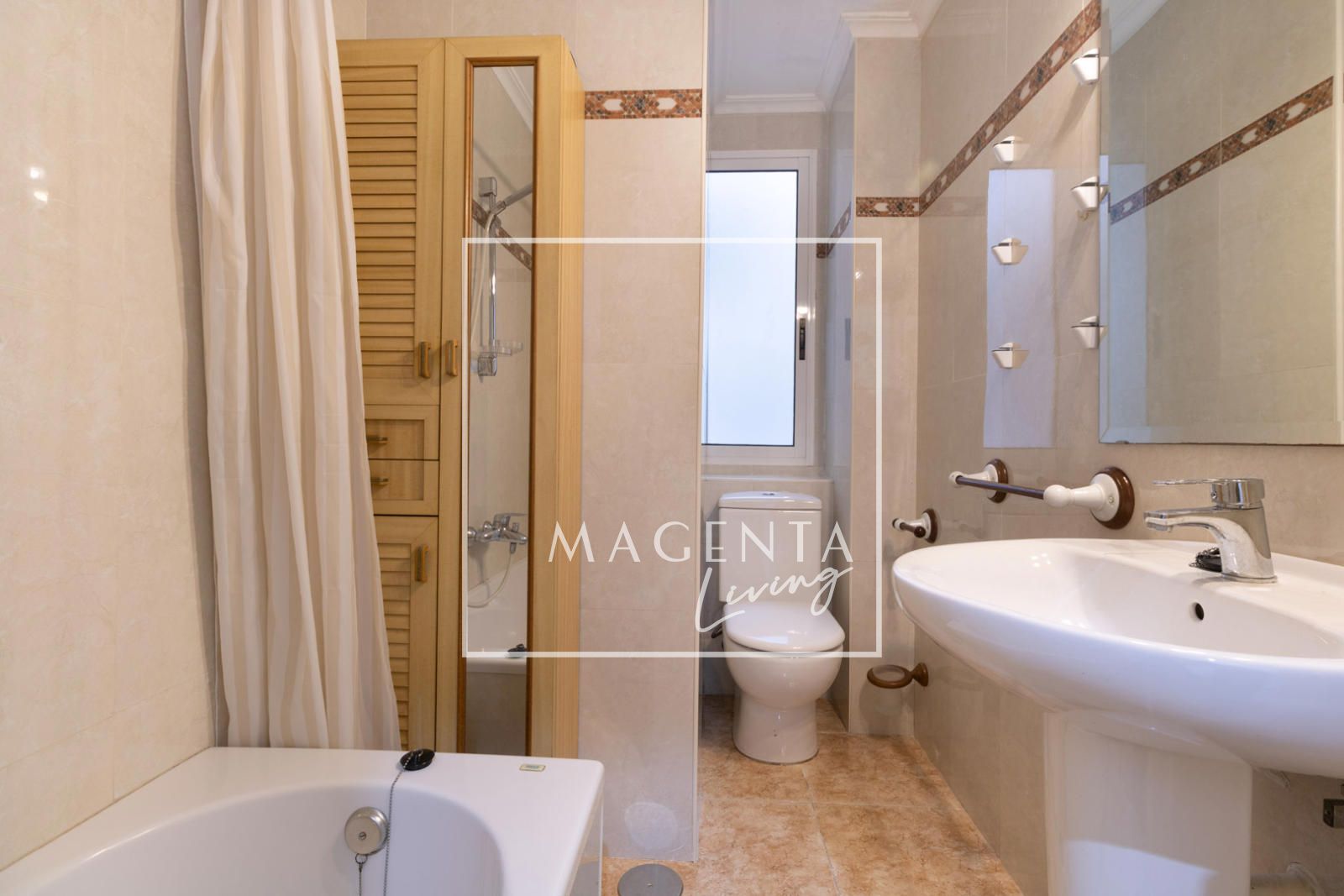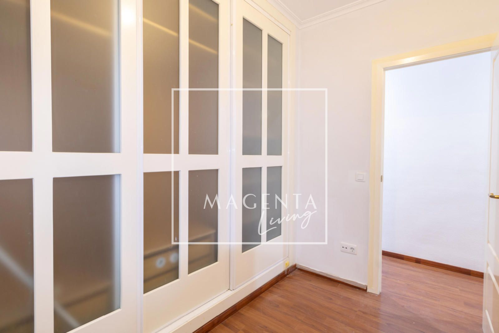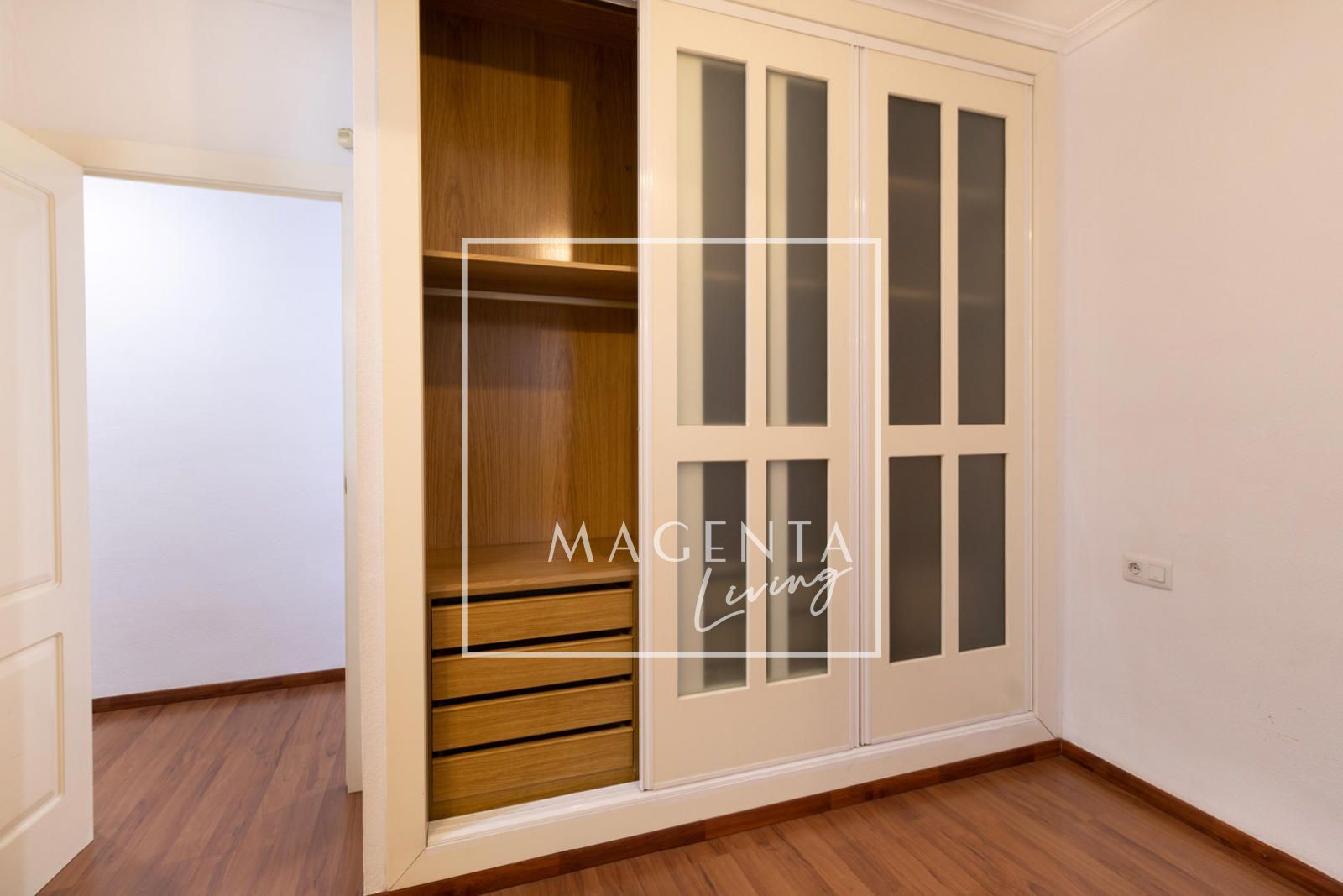 La habitación principal dispone de baño en suite y amplios armarios de suelo a techo, creando un espacio íntimo, cómodo y bien organizado. La segunda habitación y el despacho independiente también cuentan con generosos armarios empotrados, lo que permite aprovechar al máximo cada rincón de la vivienda. Un segundo baño completo con bañera y ventilación exterior da servicio al resto del hogar.