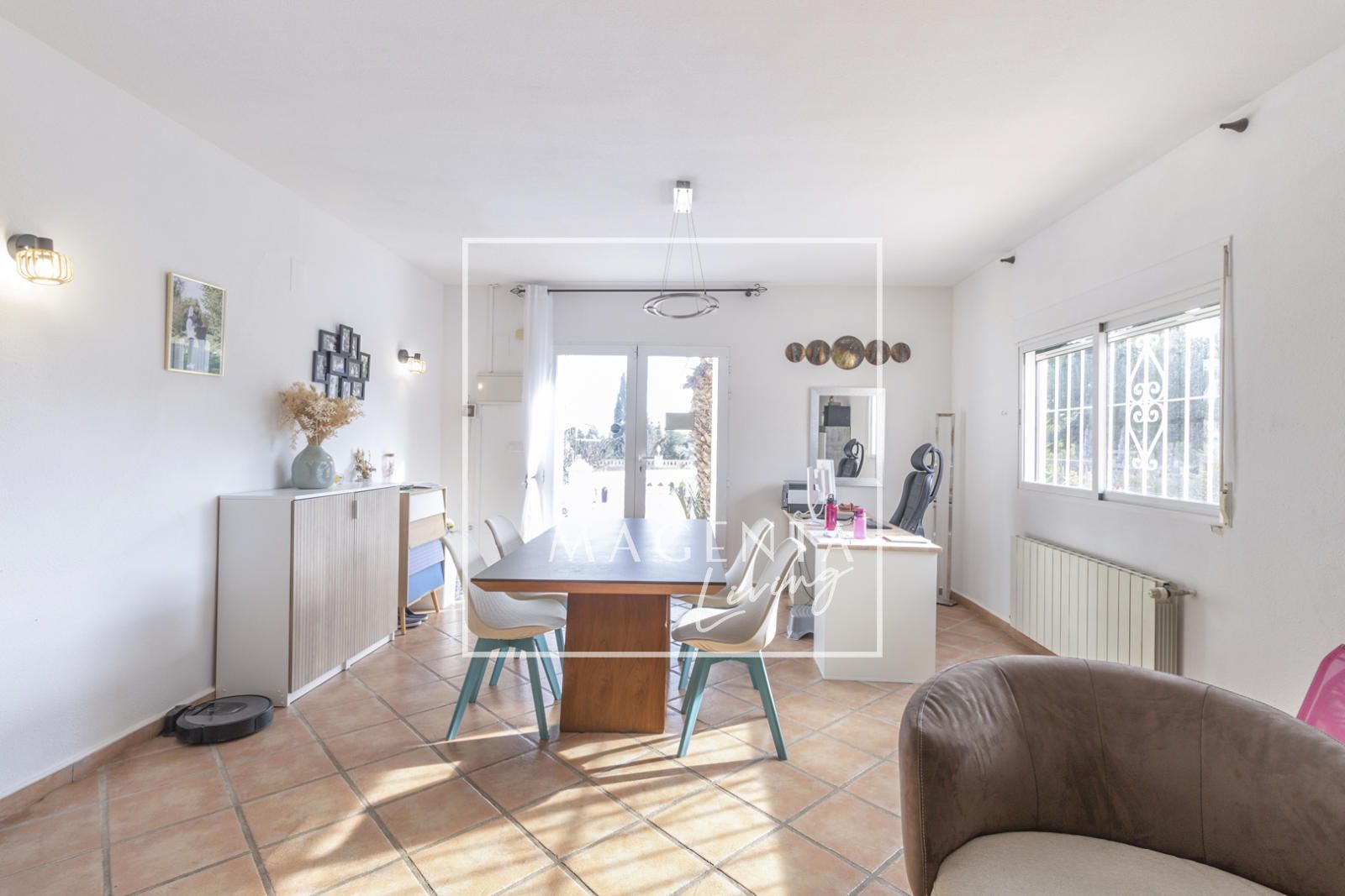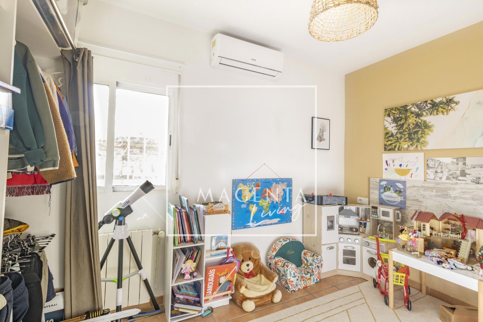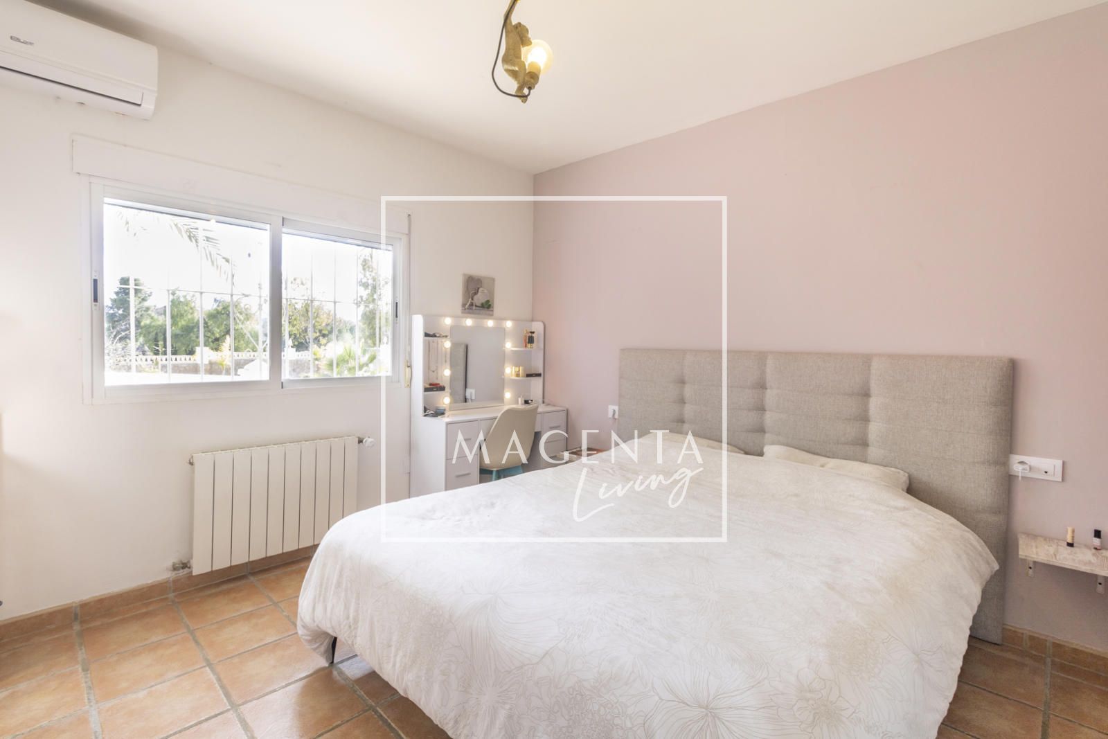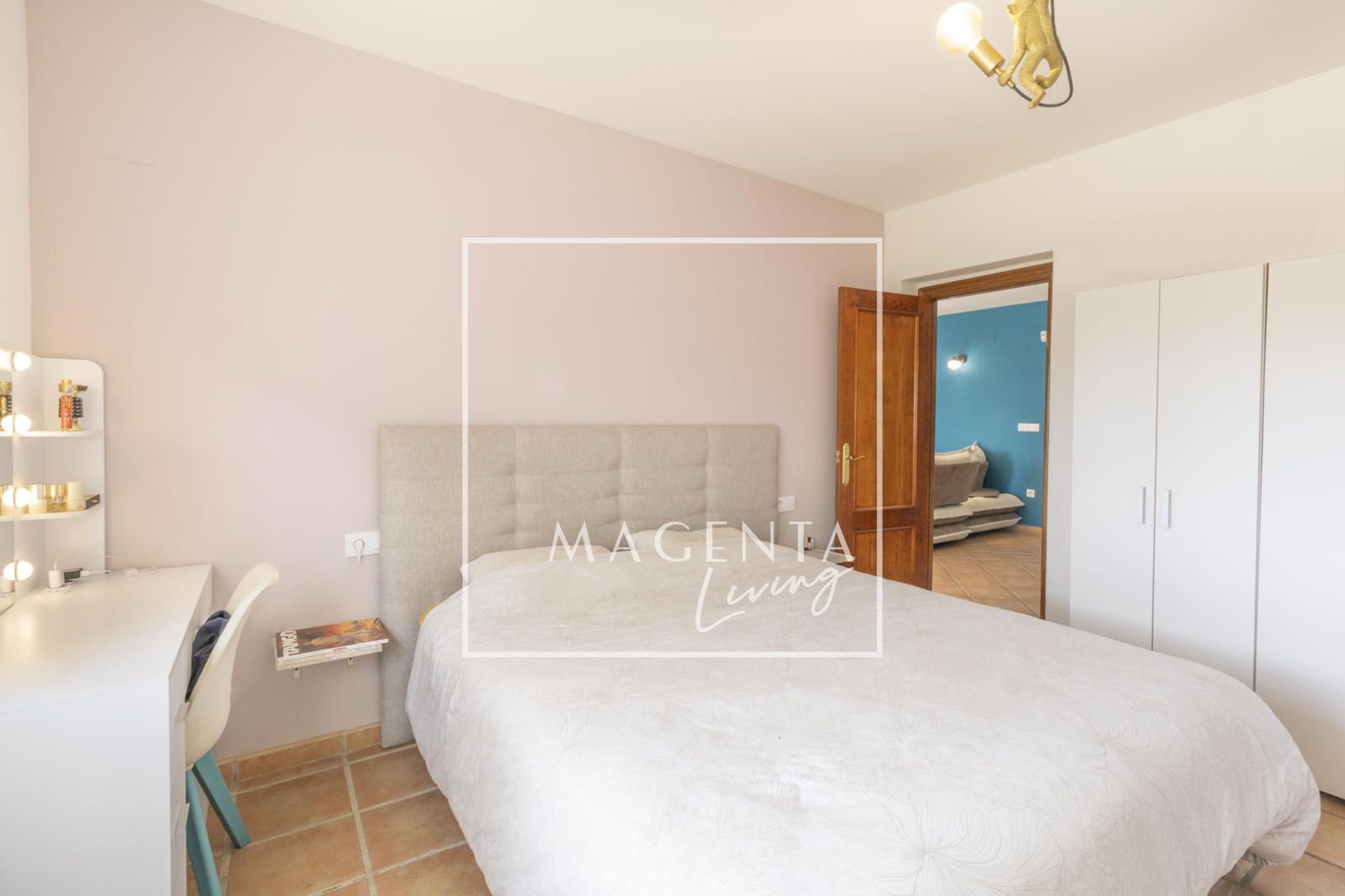 El exterior es, sin duda, uno de los grandes protagonistas de esta propiedad. El extenso jardín que rodea la vivienda ofrece distintos rincones llenos de encanto, perfectos para relajarse y disfrutar del clima mediterráneo durante todo el año. Encontramos una barbacoa, un lindo comedor exterior con pérgola, rodeado de árboles frutales y flores, un área chill-out, una zona infantil y múltiples espacios con plantas.