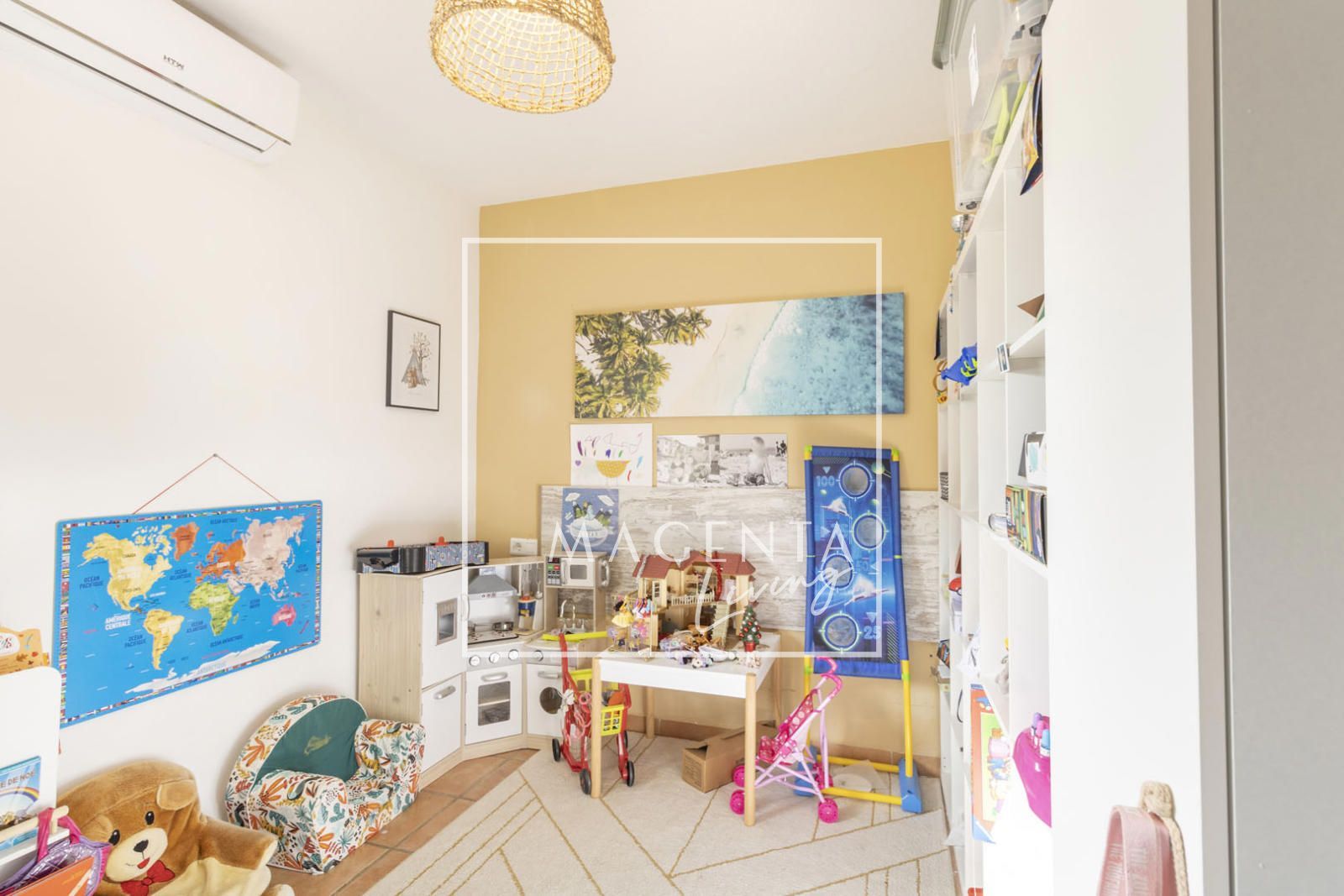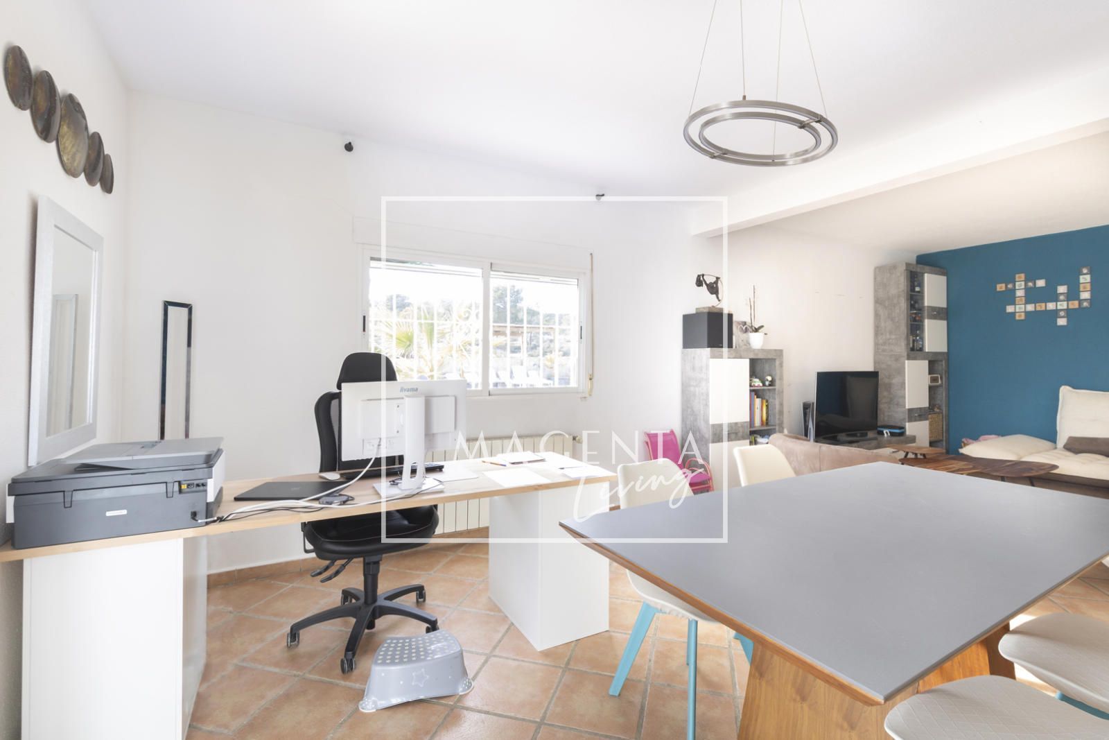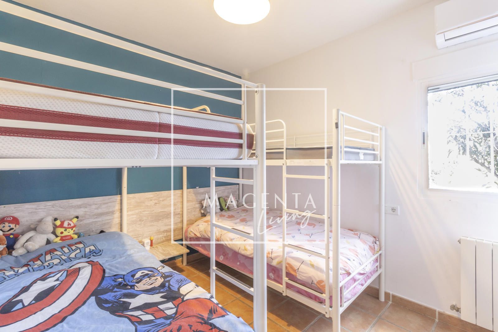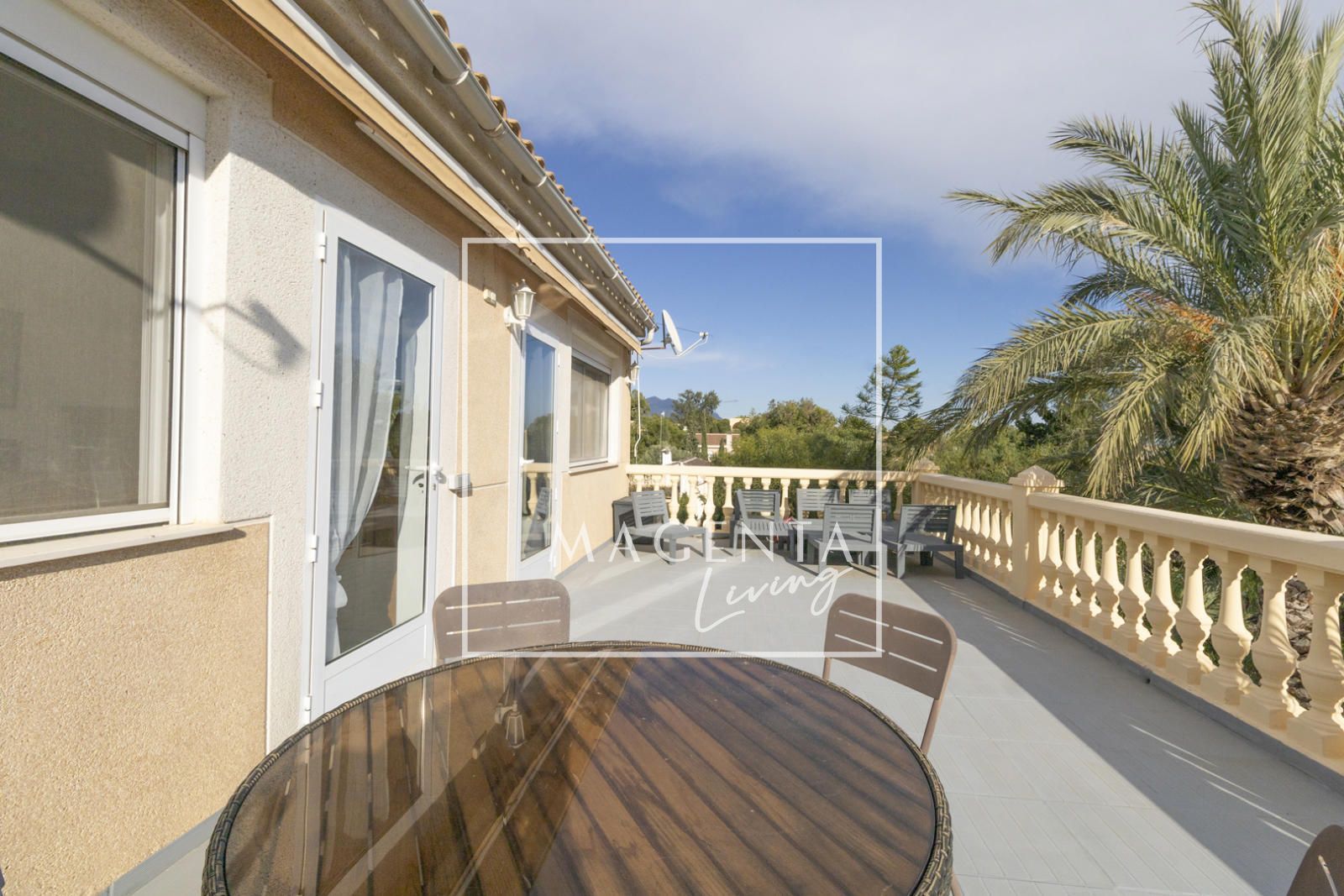 El exterior es, sin duda, uno de los grandes protagonistas de esta propiedad. El extenso jardín que rodea la vivienda ofrece distintos rincones llenos de encanto, perfectos para relajarse y disfrutar del clima mediterráneo durante todo el año. Encontramos una barbacoa, un lindo comedor exterior con pérgola, rodeado de árboles frutales y flores, un área chill-out, una zona infantil y múltiples espacios con plantas.