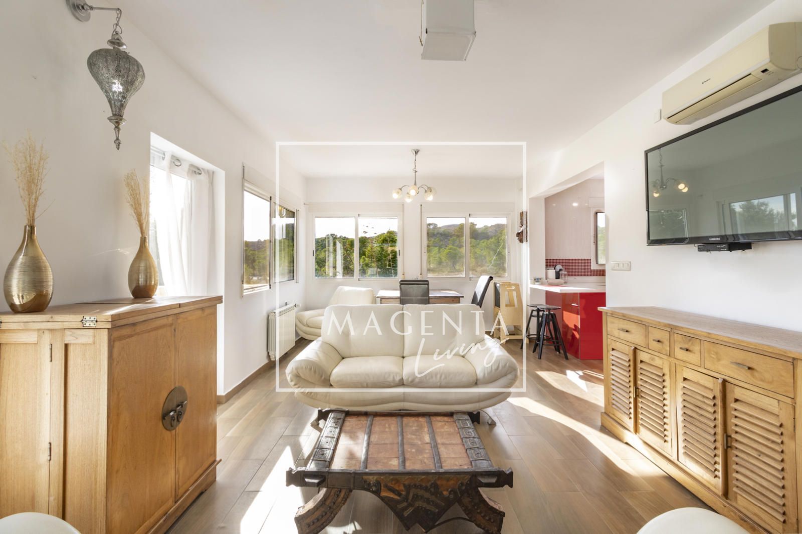 La segunda planta alberga un atractivo espacio independiente de 60 m², que constituye una vivienda en sí misma, perfecto para invitados o como espacio privado adicional. Este nivel cuenta con un dormitorio doble, un baño completo con bañera y una alegre cocina abierta al salón-comedor, muy luminosos y con vistas espectaculares al campo que rodea la vivienda. Desde el salón se accede a una magnífica terraza, un lugar privilegiado desde el que contemplar las vistas al amplio jardín, la zona de piscina, las montañas y el mar en el horizonte.