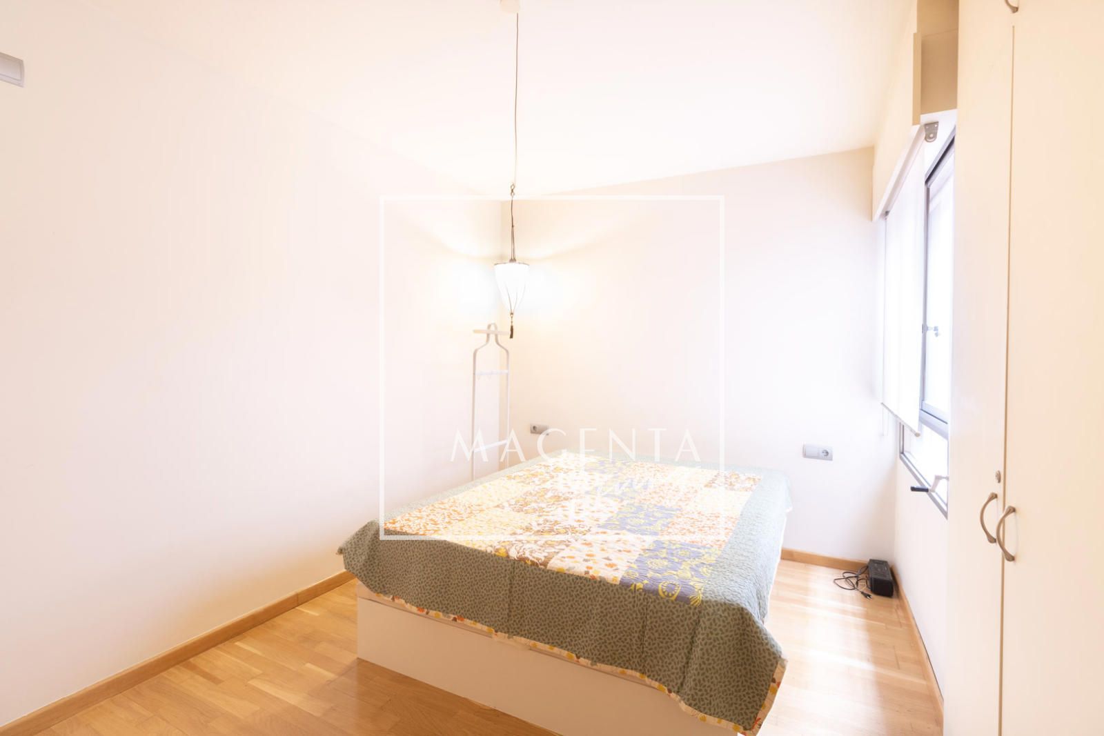 Le premier étage abrite un appartement de 61 m², composé d’une chambre, d’une salle de bain complète et d’une cuisine indépendante, avec murs à finition lisse et parquet en chêne.