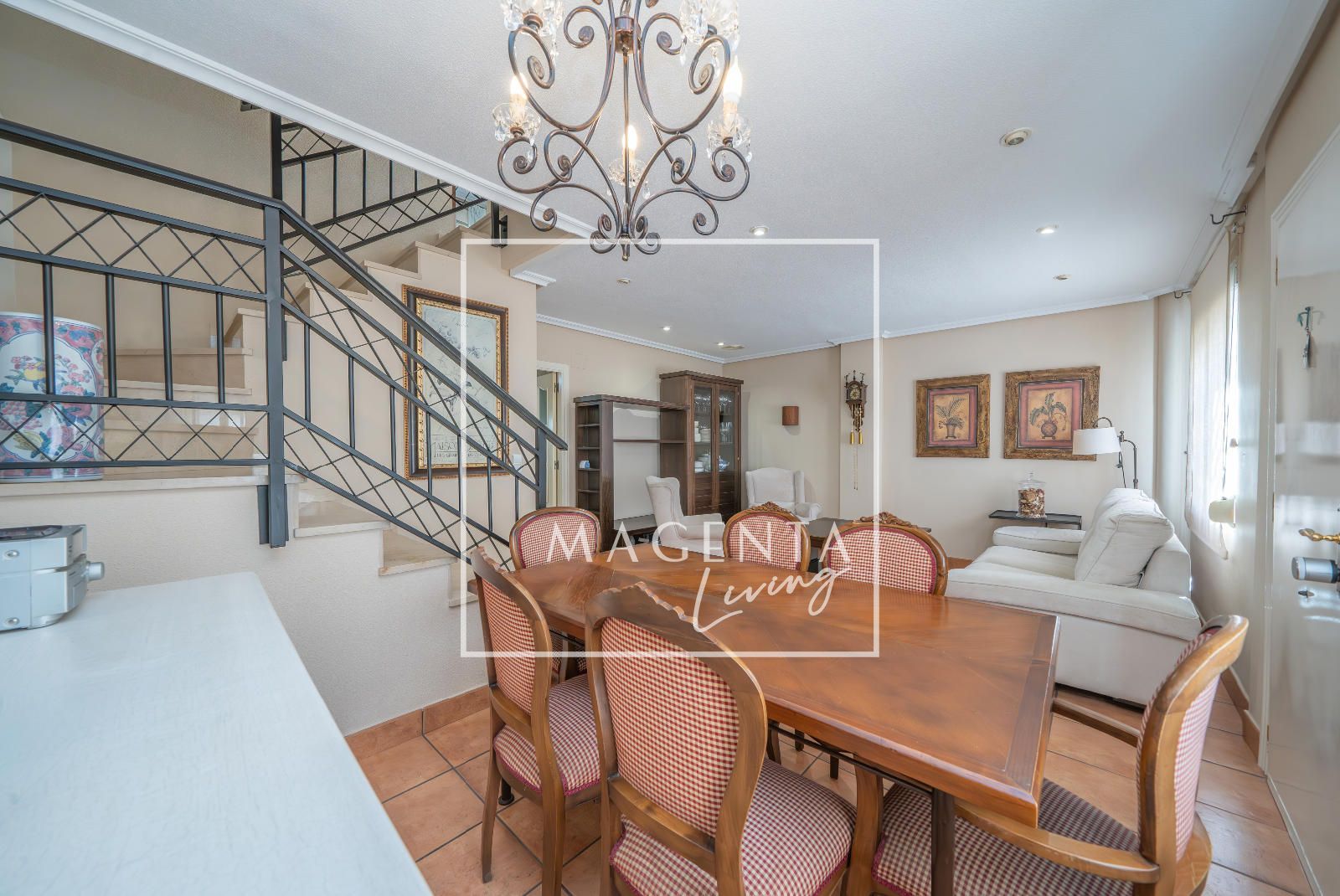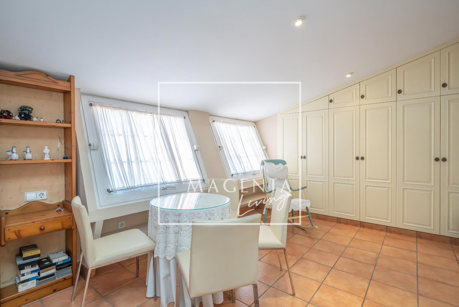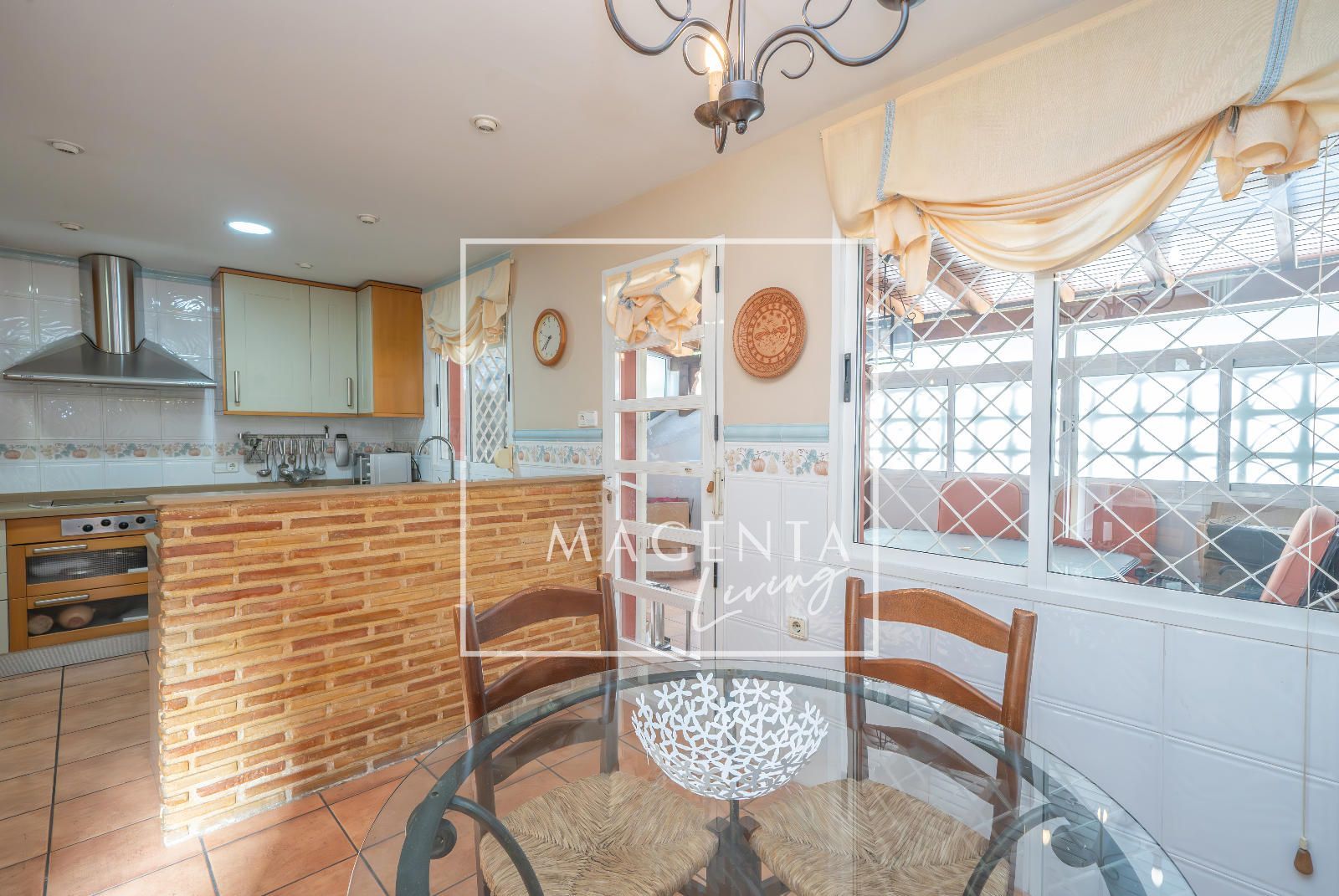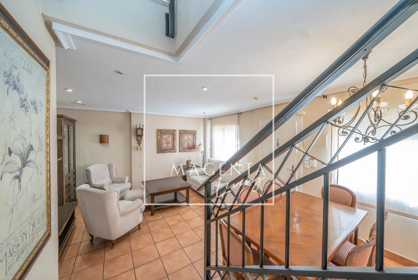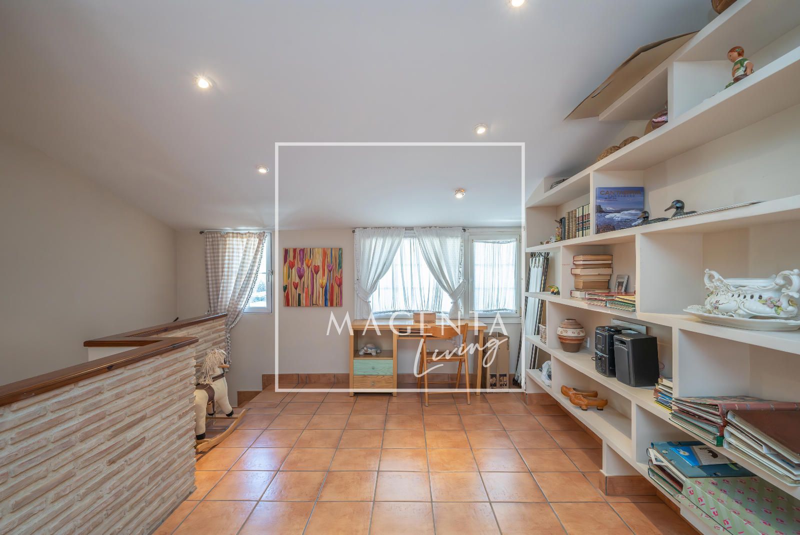 L’abitazione è distribuita in modo funzionale e accogliente. Al piano principale troviamo un elegante soggiorno con zona pranzo, perfetto per la vita quotidiana. Accanto alla scala che conduce al piano superiore si trova una spaziosa cucina completamente attrezzata, con finiture senza tempo, aperta su una piacevole zona breakfast, oltre a un bagno di servizio. Dalla cucina si accede a un’ampia terrazza coperta di 33 m², collegata a un’ulteriore terrazza scoperta di 25 m², ideale per riunioni familiari, pranzi all’aperto o momenti di relax.