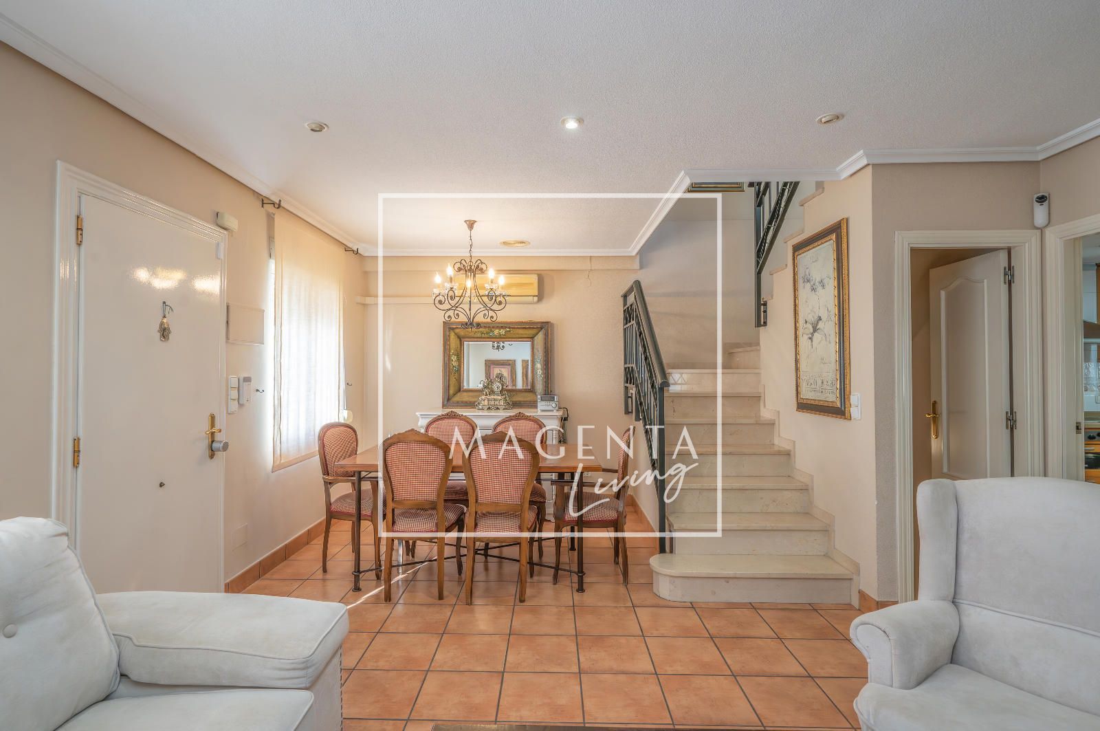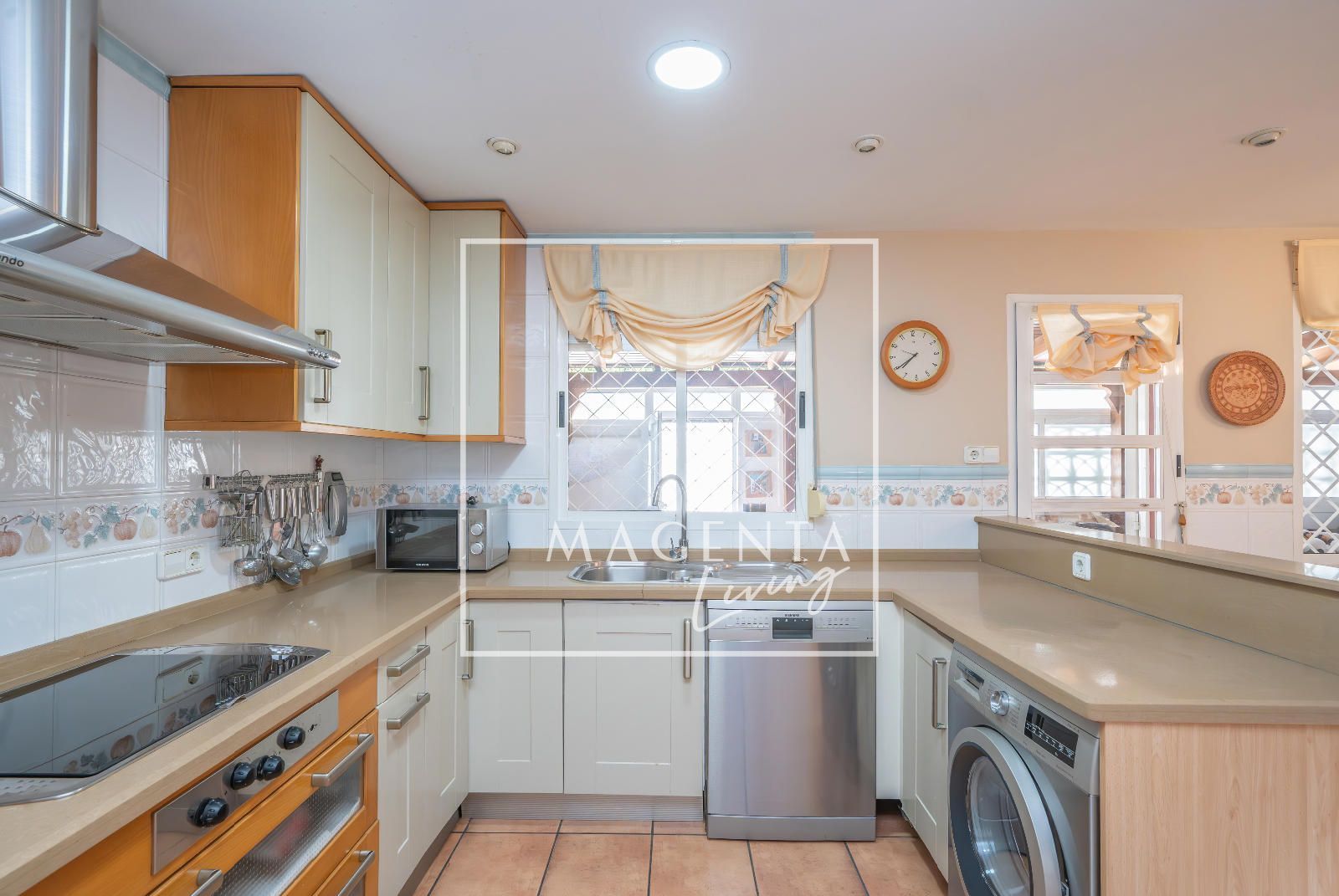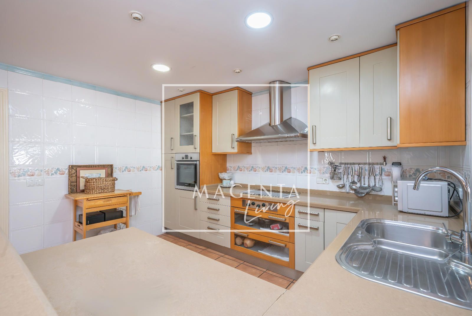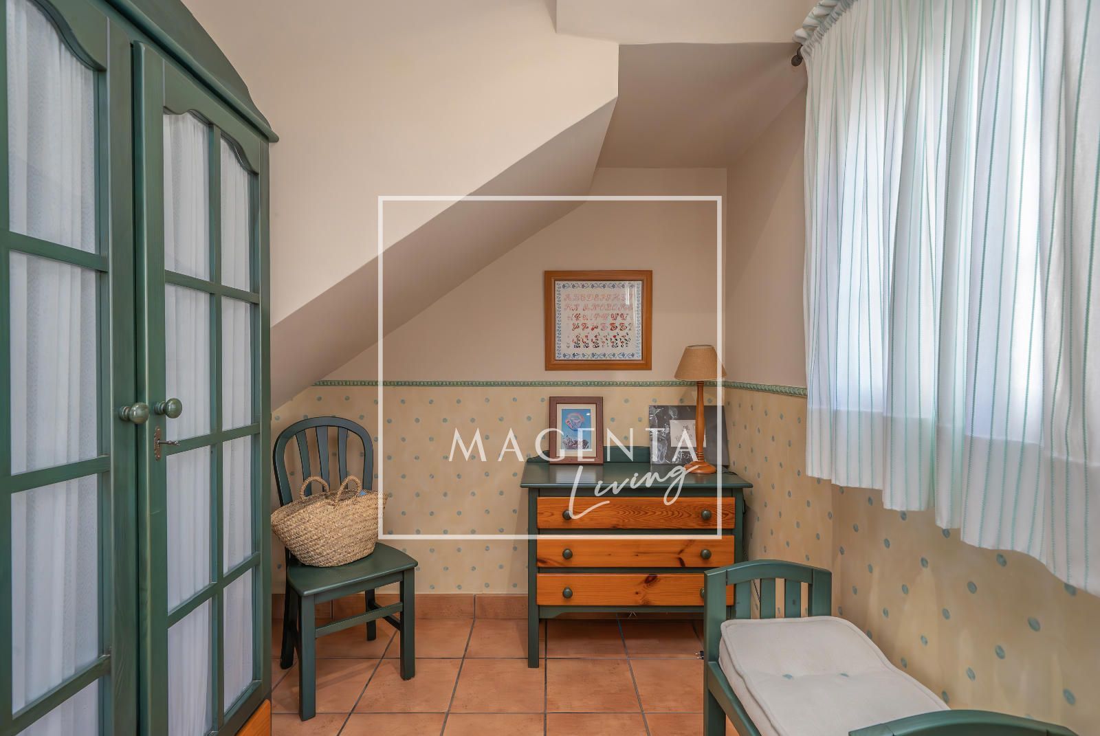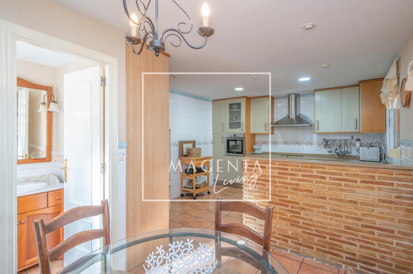 L’abitazione è distribuita in modo funzionale e accogliente. Al piano principale troviamo un elegante soggiorno con zona pranzo, perfetto per la vita quotidiana. Accanto alla scala che conduce al piano superiore si trova una spaziosa cucina completamente attrezzata, con finiture senza tempo, aperta su una piacevole zona breakfast, oltre a un bagno di servizio. Dalla cucina si accede a un’ampia terrazza coperta di 33 m², collegata a un’ulteriore terrazza scoperta di 25 m², ideale per riunioni familiari, pranzi all’aperto o momenti di relax.