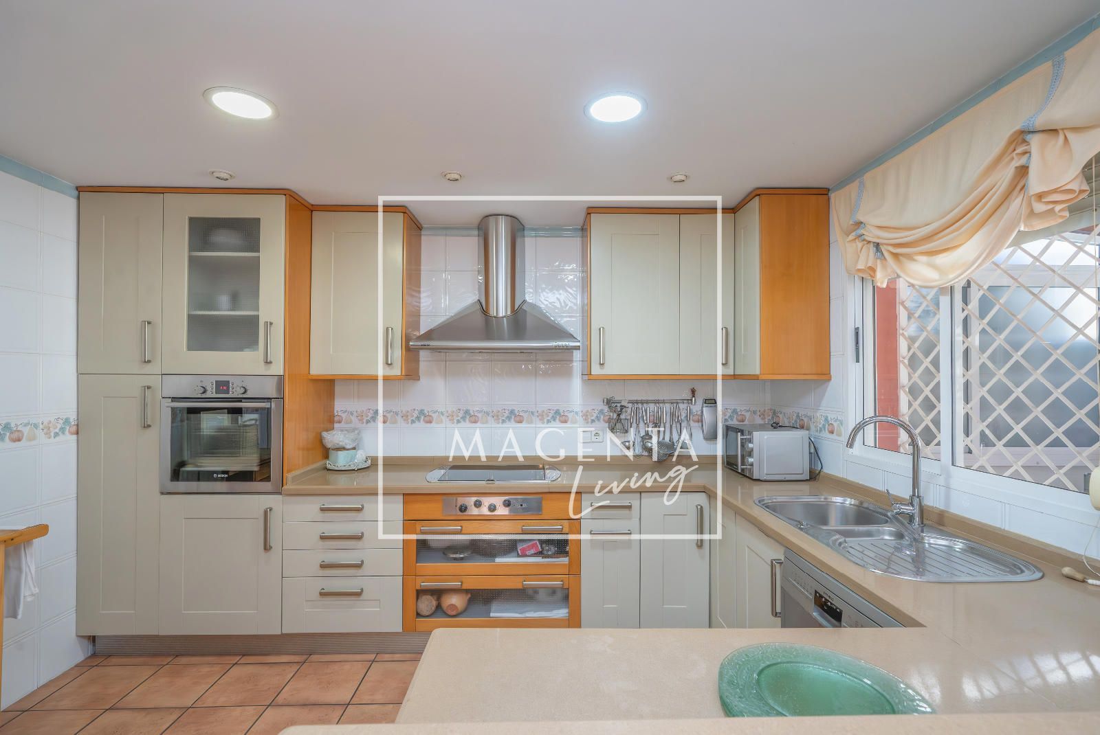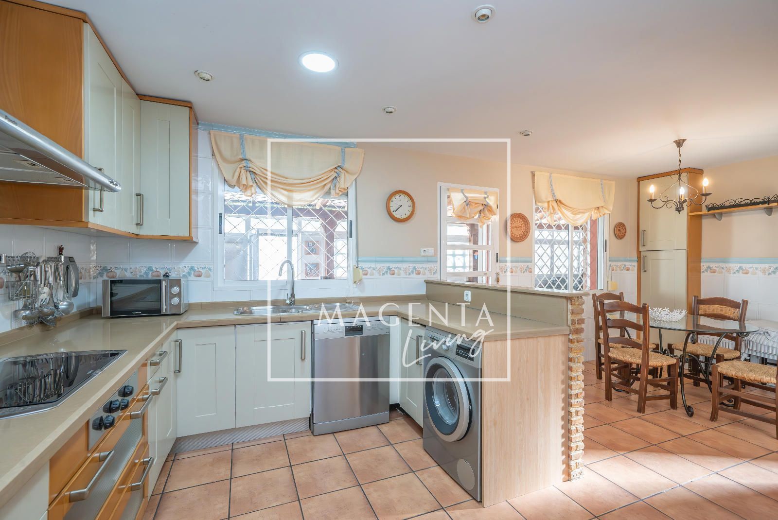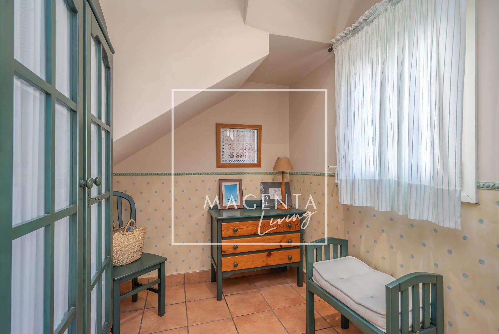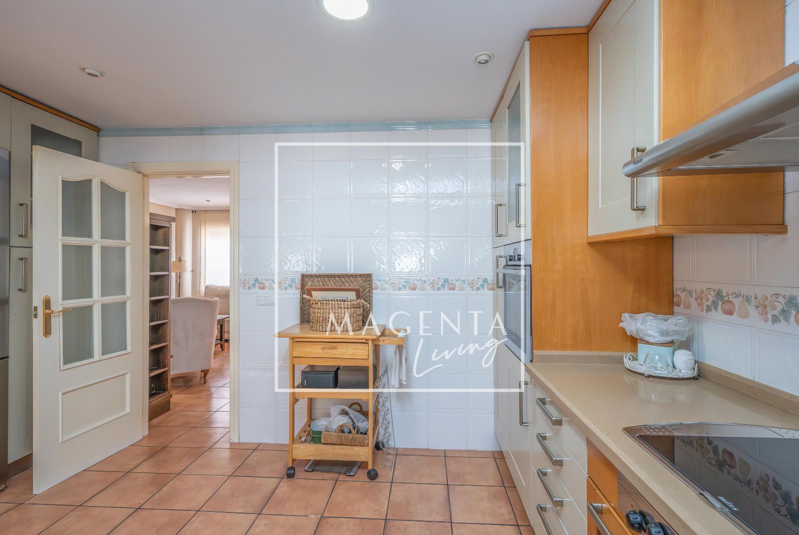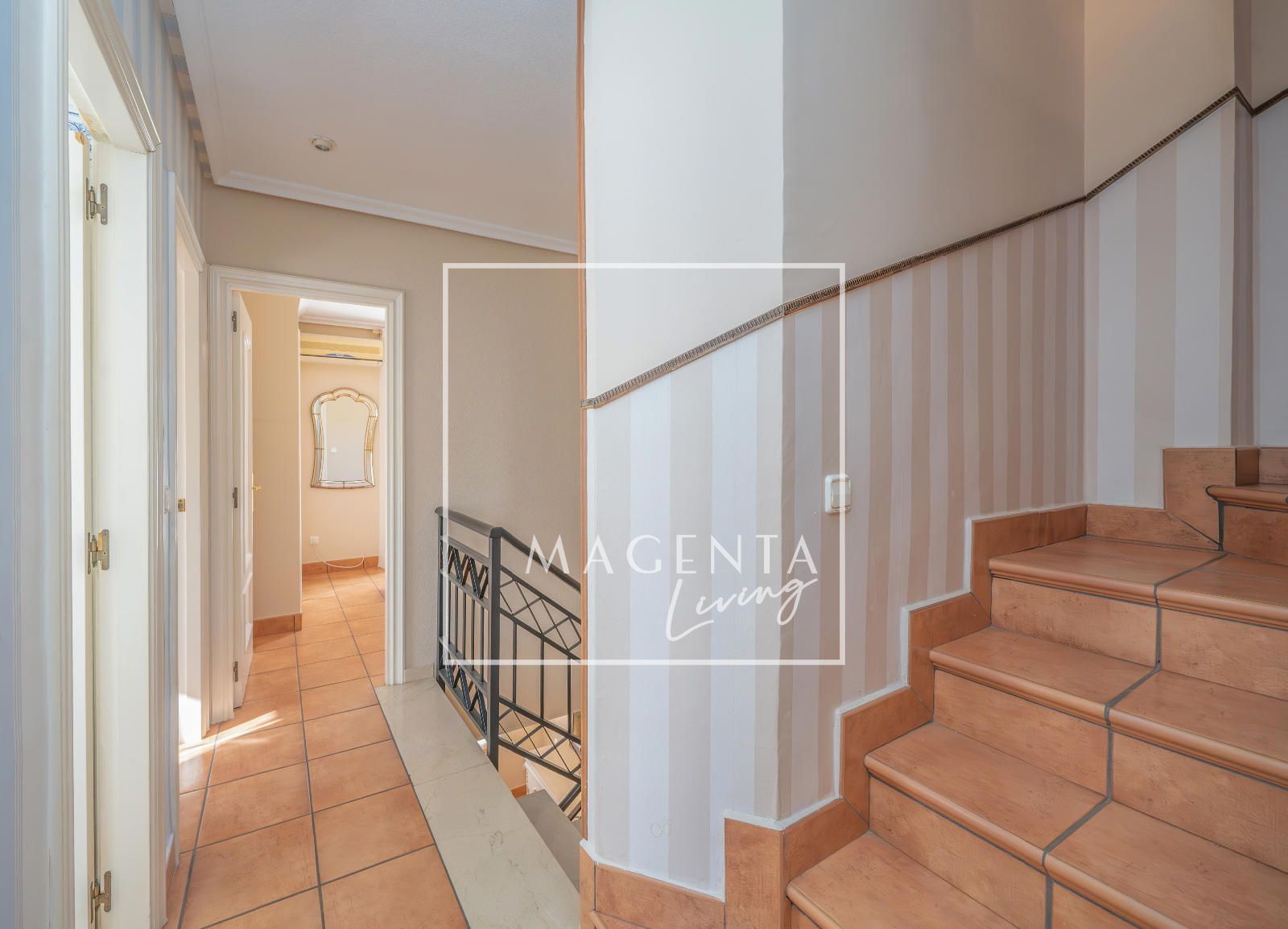 L’abitazione è distribuita in modo funzionale e accogliente. Al piano principale troviamo un elegante soggiorno con zona pranzo, perfetto per la vita quotidiana. Accanto alla scala che conduce al piano superiore si trova una spaziosa cucina completamente attrezzata, con finiture senza tempo, aperta su una piacevole zona breakfast, oltre a un bagno di servizio. Dalla cucina si accede a un’ampia terrazza coperta di 33 m², collegata a un’ulteriore terrazza scoperta di 25 m², ideale per riunioni familiari, pranzi all’aperto o momenti di relax.