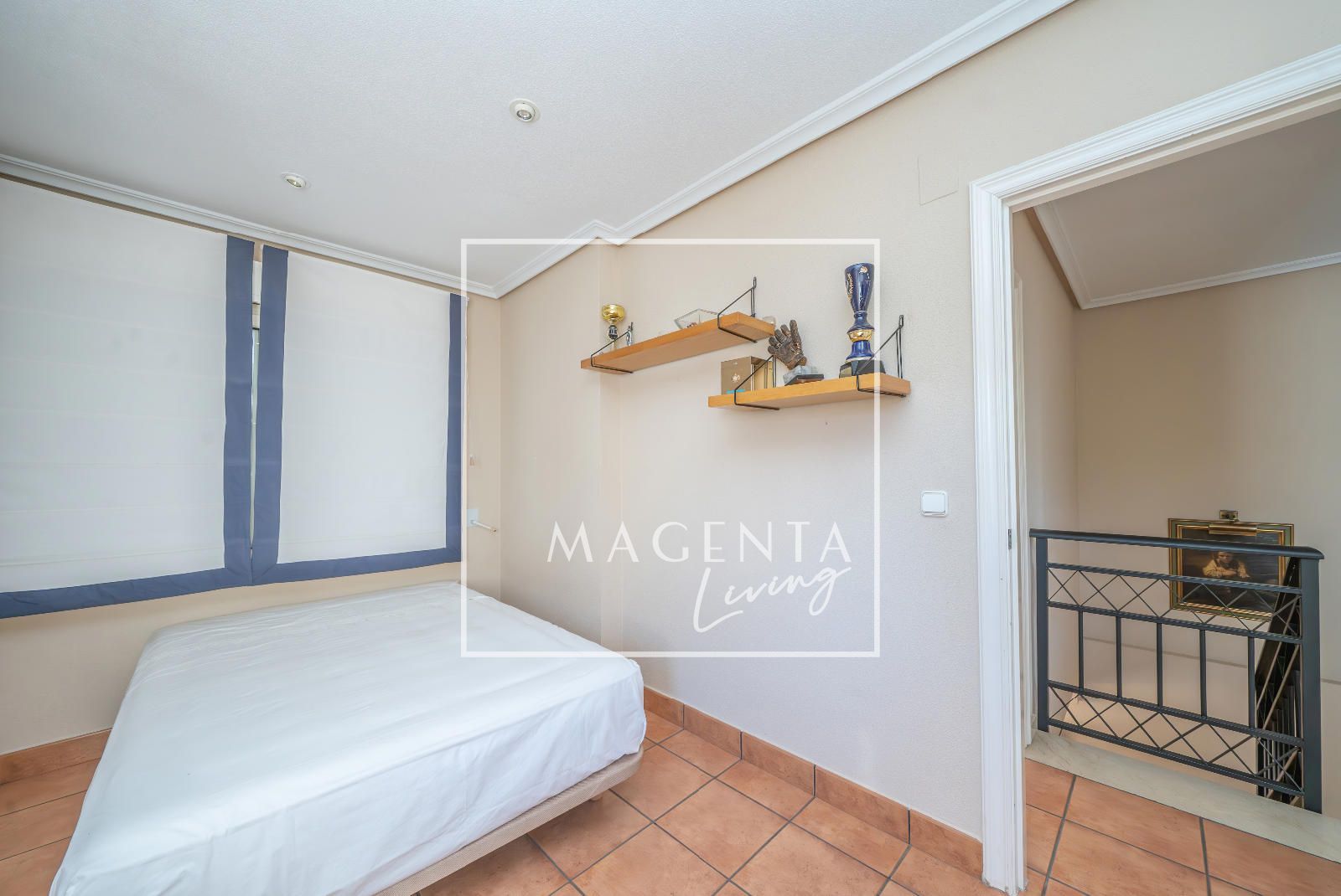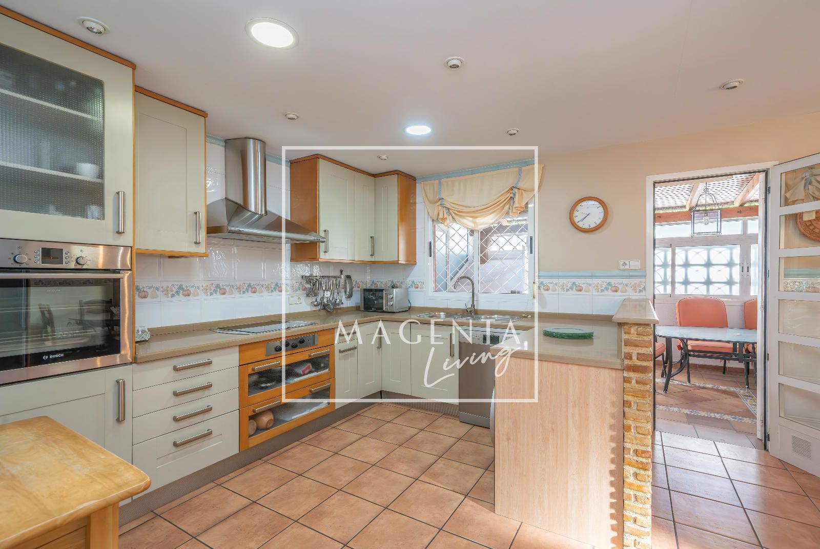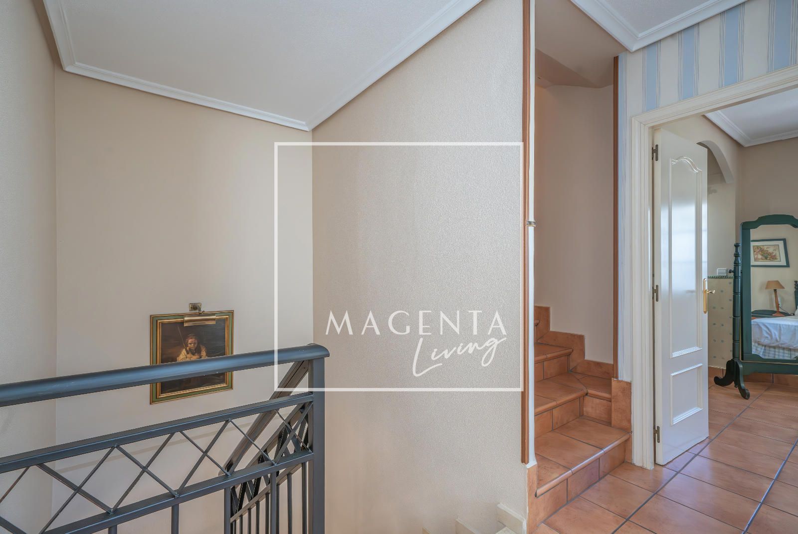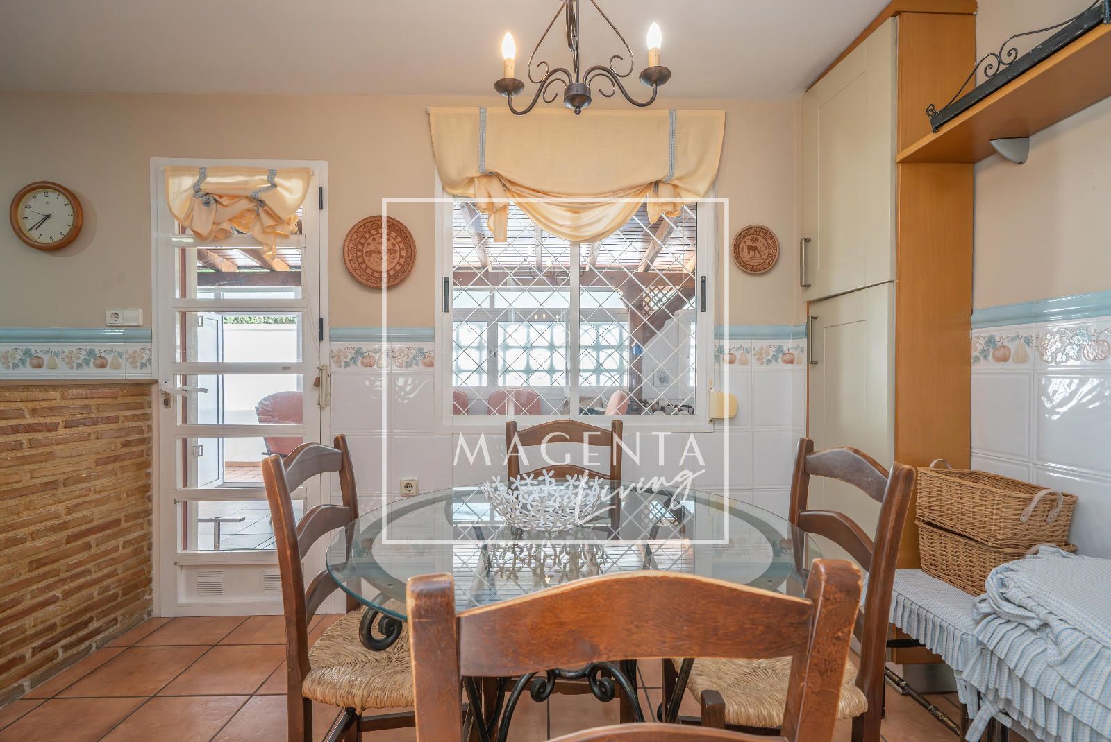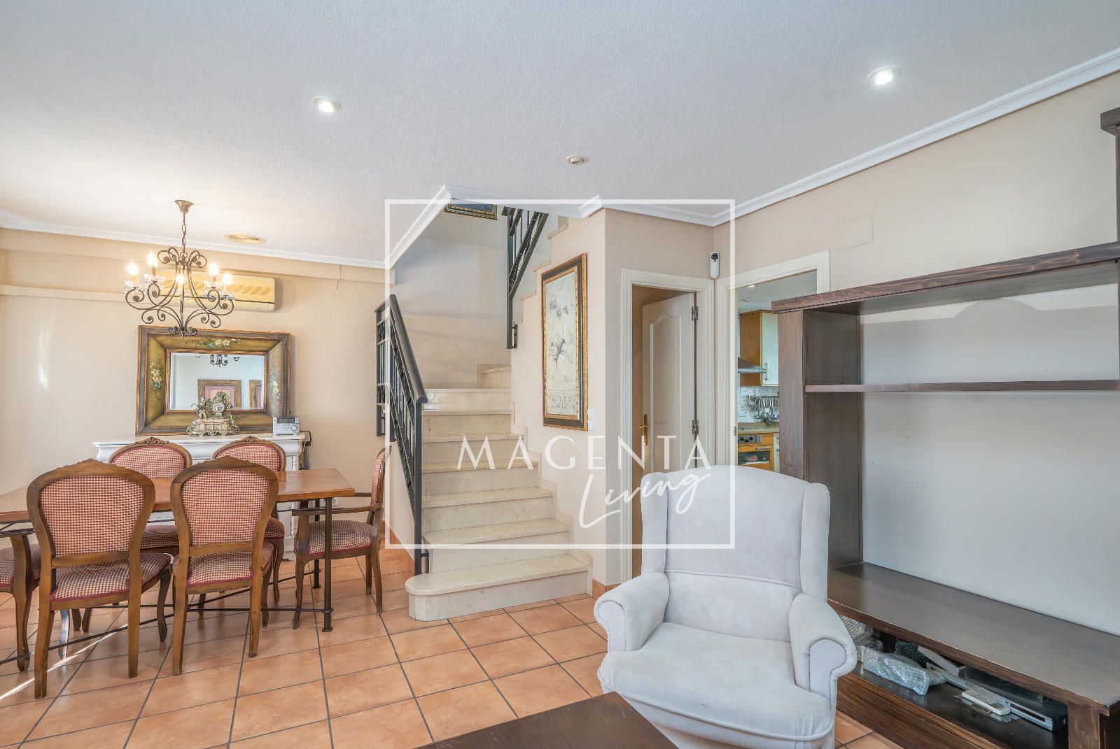 L’abitazione è distribuita in modo funzionale e accogliente. Al piano principale troviamo un elegante soggiorno con zona pranzo, perfetto per la vita quotidiana. Accanto alla scala che conduce al piano superiore si trova una spaziosa cucina completamente attrezzata, con finiture senza tempo, aperta su una piacevole zona breakfast, oltre a un bagno di servizio. Dalla cucina si accede a un’ampia terrazza coperta di 33 m², collegata a un’ulteriore terrazza scoperta di 25 m², ideale per riunioni familiari, pranzi all’aperto o momenti di relax.